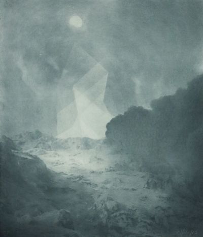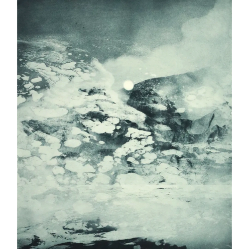 The figure of the anchoress is historically a woman who chose a life of seclusion and contemplation. Within this body of work she is a symbolic anchor: a feminine monolith, quiet yet unshakable, radiating a mystic charge. The landscapes become vessels for this archetype: dark oceans, lunar skies, and elemental surfaces that hum with power and stability.